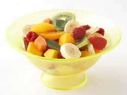 Obieramy owoce i kroimy na małe kawałki do salaterki.